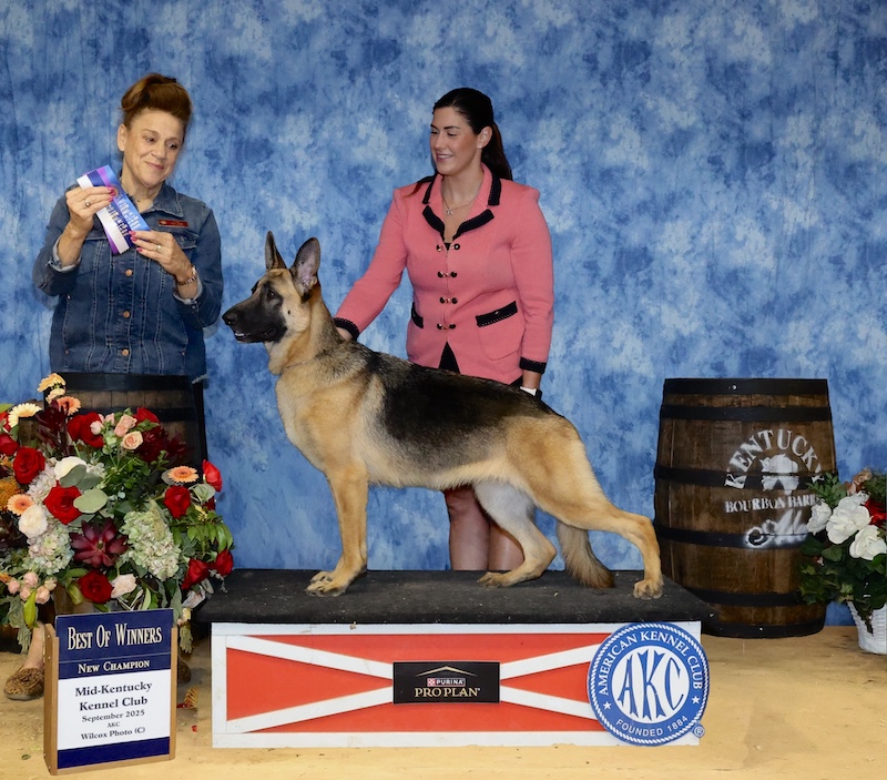 We are ecstatic to announce our Kingdom’s Joyous Heart became AKC tripled titled! Pending AKC approval, Joy finished her championship today under Joan Liebes earning WB all 5 days shown, and BOW today for her final point, handled by Kingdom’s junior handler Sunny Newman! Joy made her way over to the performance venue for the first time and was a natural, also earning her BCAT and CA coursing titles this weekend! A triple title weekend for this young girl at 14 months old makes us so proud! Huge Congratulations to her owners Steve and Sharon McClellan.